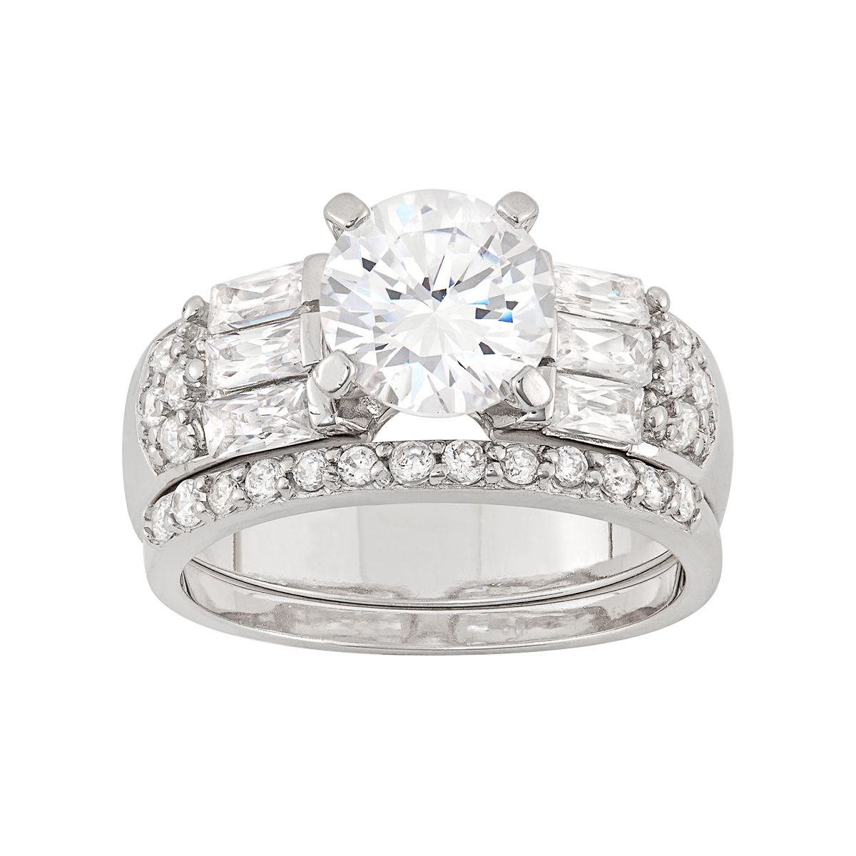 Amazon Com 925 Sterling Silver 2 Piece Cubic Zirconia Cz Wedding Band Ring Size 6 00 Stone Fancy Engagement Set Fine Jewelry For Women Gifts For Her Ice Carats Clothing Shoes Jewelry
